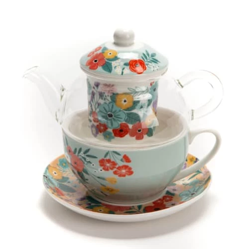 Maisons Du Monde Théières Théière En Verre Transparent Motif Végétal Vert Et Porcelaine 1.2L