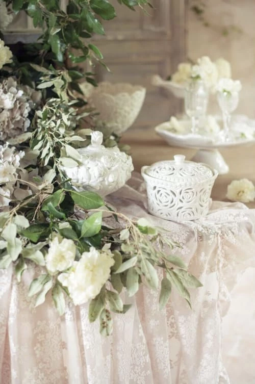 Plateau à gâteaux ou fruits blanc orné de roses au style shabby chic ,très élégant et romantique pour mettre en valeur vos pâtisseries.