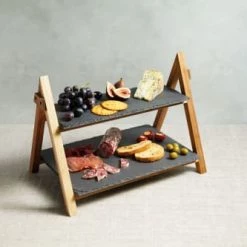 Artesà Plats, Saladiers Et Coupelles Support De Service 2 Niveaux Bois Et Ardoise Noir & Marron