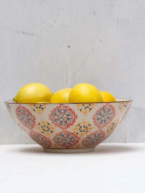 Maisons Du Monde Plats, Saladiers Et Coupelles Saladier En Grès Blanc Et Jaune D22