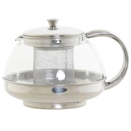 Théière en verre avec Infuseur en Acier Inoxydable Verre et Acier Inoxydable Dimensions : Hauteur 12 cm – Largeur 18 cm – Profondeur 14 cm Contenance : 1050 ml