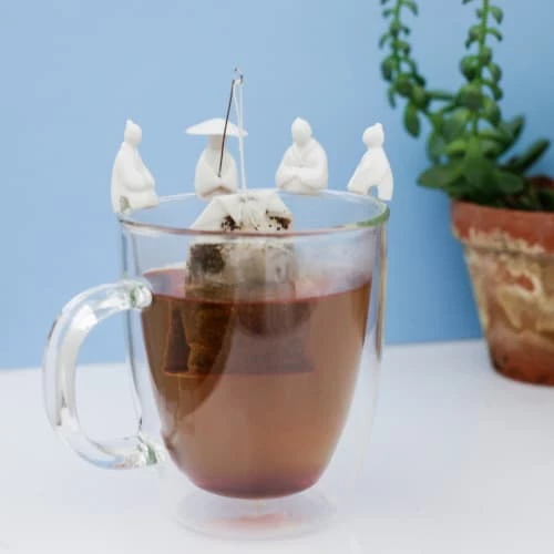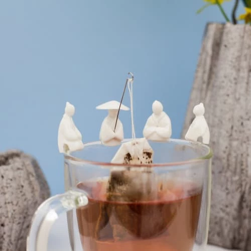 Ces porte-sachets à thé sont basés sur une vieille histoire chinoise de Jiang Taïong. Un pêcheur utilise un hameçon droit car il croyait que les poissons viendraient à lui lorsqu’ils seraient prêts à être capturés. Maintenant, il peut patiemment tenir votre sachet de thé pendant qu’il trempe. Dimensions : 2 x 2 x 3.5 cm Matières : silicone et acier