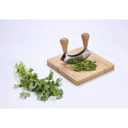 Sa lame en acier inoxydable incurvée, épouse parfaitement la forme de la planche afin de faciliter la découpe des aliments. De plus, les poignées en bois de la lame facilitent la tenue en main.