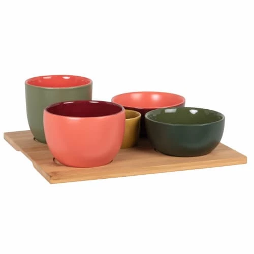 Maisons Du Monde Plats Apéritif Et Accessoires Coupelles Apéritives En Grès Multicolore (x5) Et Plateau En Bambou