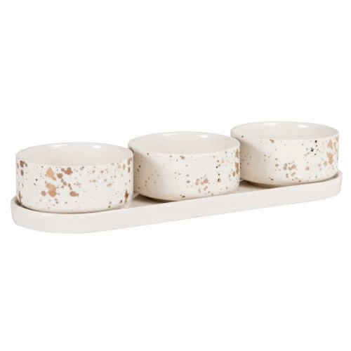 Maisons Du Monde Plats Apéritif Et Accessoires Coffret Coquetiers En Grès Gris Et Ivoire (x4)