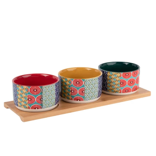 Maisons Du Monde Plats Apéritif Et Accessoires Plateau Apéritif 3 Bols En Grès à Motifs
