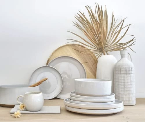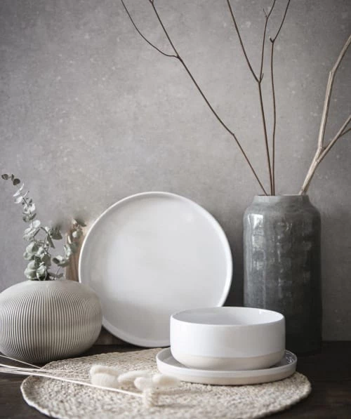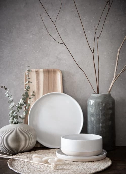 Maisons Du Monde Plats Apéritif Et Accessoires Plateau Apérétif 3 Bols En Porcelaine Blancs Et Kaki