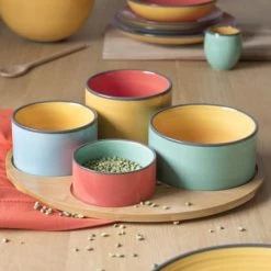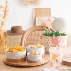 Maisons Du Monde Plats Apéritif Et Accessoires Plateau Apéritif En Bambou 4 Bols En Porcelaine