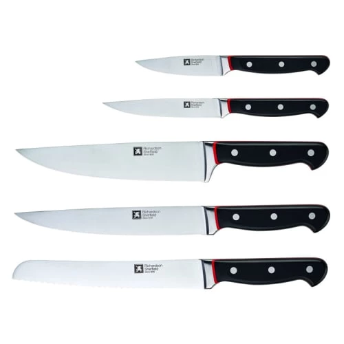 matière : Ce bloc est composé d’un aiguiseur de couteaux, un couteau d’office de 20.5 cm avec une lame de 9.5 cm, un couteau à pain de 34 cm avec une lame de 20.5 cm, un couteau de ménage de 24 cm avec une lame de 12.5 cm, un couteau de chef de 33.5 cm avec une lame de 20 cm et un couteau à découper de 33.5 cm avec un lame de 20.5 cm. les manches bi-injection et rivetés permettent une prise en main optimale et les lames en inox ont une excellente qualité de coupe. Matière : Inox Couleur : Noir Longueur : 12 cm Largeur : 13.5 cm Hauteur : 23 cm