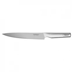 Couteau à découper, lame flexible, de la gamme Asean. Lame 20cm en acier haute performance MoV – Molybdène Vanadium. Le dos de lame est arrondi, pour un confort de coupe optimal. Le fil de la lame est poli au cuir pour un tranchant rasoir. Couteau monobloc avec manche en acier inox 18/0. Nous recommandons d’essuyer le couteau après lavage – machine ou main – pour en prolonger indéfiniment l’usage.La collection Asean se décline sur 6 modèles d’inspiration japonaise. 100% acier, les couteaux de cuisine Asean ont une résistance à toute épreuve. Faciles à nettoyer, leur fluidité en fait des outils sains, antibactériens, adaptés à un usage quotidien.Les couteaux de Chef Sabatier Trompette ont été développés pour répondre aux exigences spécifiques de la préparation culinaire. Les lames des couteaux sont en acier inoxydable Molybdène vanadium de grande qualité avec un pourcentage élevé de carbone. Ces aciers confèrent aux produits leurs qualités de résistance, dureté, inoxydabilité, anti-corrosion et tranchant.