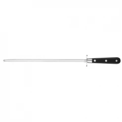 Fusil à aiguiser de la gamme Universal. Fusil long de 30cm en acier haute performance MoV – Molybdène Vanadium. Nous recommandons d’essuyer le fusil après lavage – machine ou main – pour en prolonger indéfiniment l’usage.La collection Universal est une gamme incontournable de la coutellerie professionnelle, qui se décline sur 14 modèles. Design classique, avec un manche pourvu d’une garde avant et arrière. Ces couteaux sont montés avec 3 rivets traversants qui garantissent une solidité à toute épreuve.Les couteaux de Chef Sabatier Trompette ont été développés pour répondre aux exigences spécifiques de la préparation culinaire. Les lames des couteaux sont en acier inoxydable Molybdène vanadium de grande qualité avec un pourcentage élevé de carbone. Ces aciers confèrent aux produits leurs qualités de résistance, dureté, inoxydabilité, anti-corrosion et tranchant.