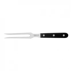 Fourchette à découper de la gamme Universal. Fourchette longue de 18cm en acier haute performance MoV – Molybdène Vanadium. Nous recommandons d’essuyer la fourchette après lavage – machine ou main – pour en prolonger indéfiniment l’usage.La collection Universal est une gamme incontournable de la coutellerie professionnelle, qui se décline sur 14 modèles. Design classique, avec un manche pourvu d’une garde avant et arrière. Ces couteaux sont montés avec 3 rivets traversants qui garantissent une solidité à toute épreuve.La marque Sabatier Trompette est née au début du 18ème siècle dans le bassin de Thiers, capitale de la coutellerie en France. Les gammes de couteaux de la marque Sabatier Trompette répondent aux usages spécifiques de la préparation culinaire. Forme de la lame, ergonomie du manche, faible poids et parfait équilibre sont étudiés afin d?obtenir des outils parfaits pour les Chefs amateurs ou confirmés.