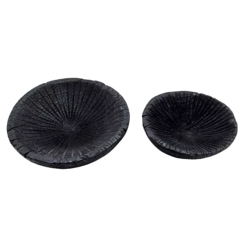 Sensei Maison Plats, Saladiers Et Coupelles Coupe En Bois Strié 24 Ou 30 Cm Noir 24x24x7 Cm