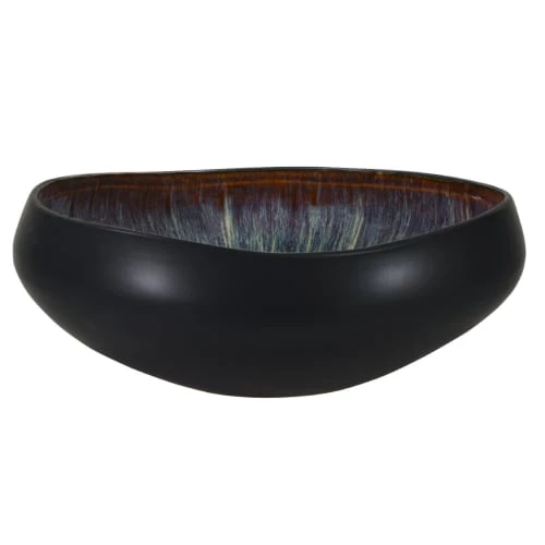 Maisons Du Monde Plats, Saladiers Et Coupelles Plat En Grès Noir Imprimé Fleurs PM